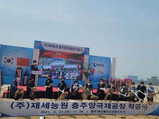 容百科技董事長(zhǎng)白厚善、總裁劉相烈、副總裁劉德賢、正極事業(yè)部總經(jīng)理佘圣賢與韓國(guó)忠州市副市長(zhǎng)、忠州市議會(huì)議長(zhǎng)、忠清北道投資科科長(zhǎng)等相關(guān)領(lǐng)導(dǎo)出席開工儀式。公司總裁劉相烈致辭中表示,容百科技韓國(guó)現(xiàn)代化正極工廠結(jié)合中韓資本與技術(shù),打造公司在高鎳正極材料領(lǐng)域的全球領(lǐng)先地位。